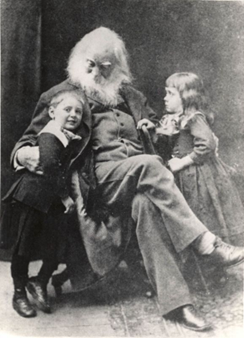 This photo is of Whitman with the niece and nephew of a friend, Jeannette Gilder.